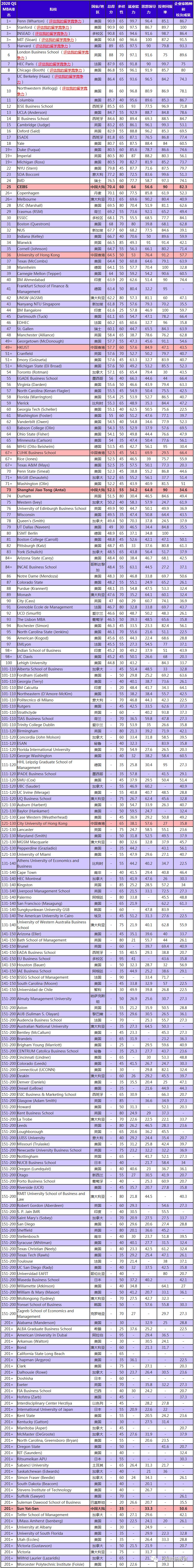 中国共有7所上榜,香港地区4所,分别是香港大学(36)、香港科技大学(49)、香港中文大学(67)、香港城市大学(121-130 );大陆有3所,分别是中欧国际工商管理学院(25)、上海交通大学(安泰管理学院)(73)以及中山大学(201+)。