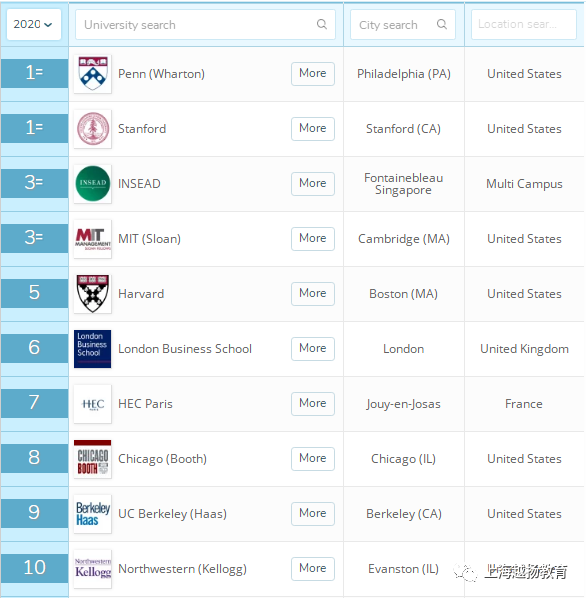 2020QS全球MBA排名:宾大沃顿&斯坦福并列第一