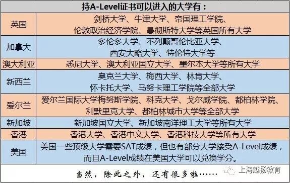 世界上几乎所有英语授课的大学都接受用A-Level的成绩申请入学,这些大学遍布英国、加拿大、澳大利亚、新西兰、香港、新加坡等中国学生热门的留学国家和地区,同时包括美国的大部分大学,如耶鲁大学、麻省理工学院、斯坦福大学等世界名校; 哪些学校,我们具体来看~
